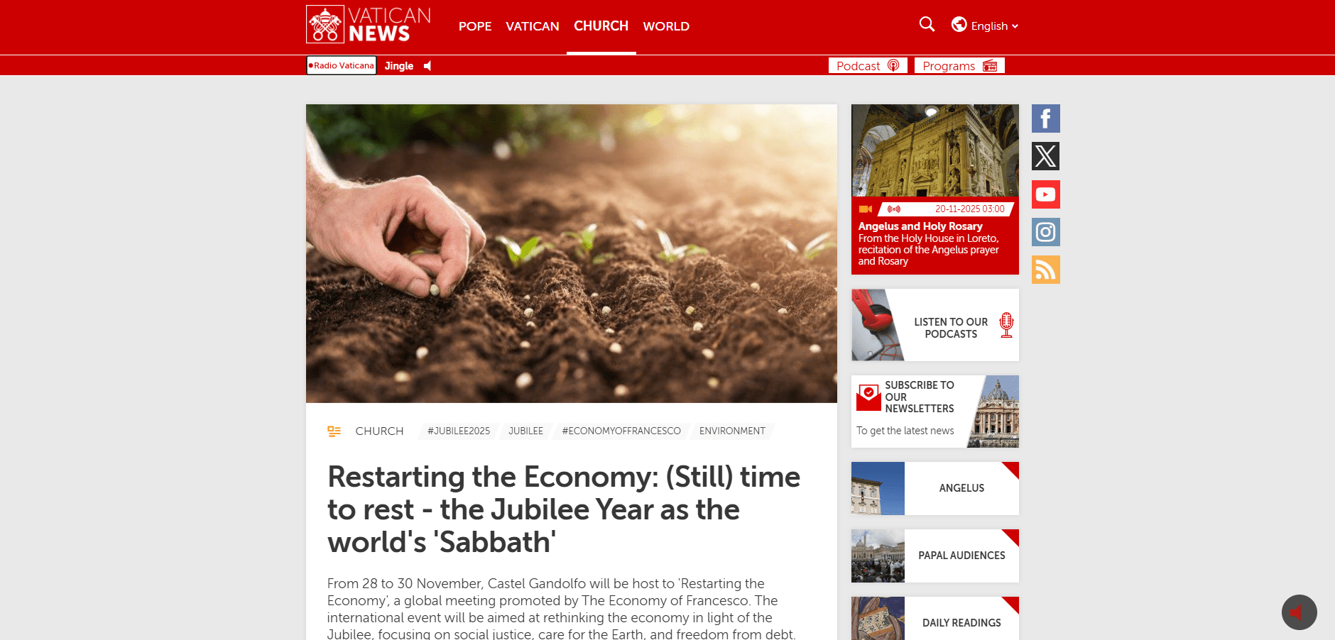 From 28 to 30 November, Castel Gandolfo will be host to 'Restarting the Economy,' a global meeting promoted by The Economy of Francesco. The international event will be aimed at rethinking the economy in light of the Jubilee, focusing on social justice, care for the Earth, and freedom from debt.