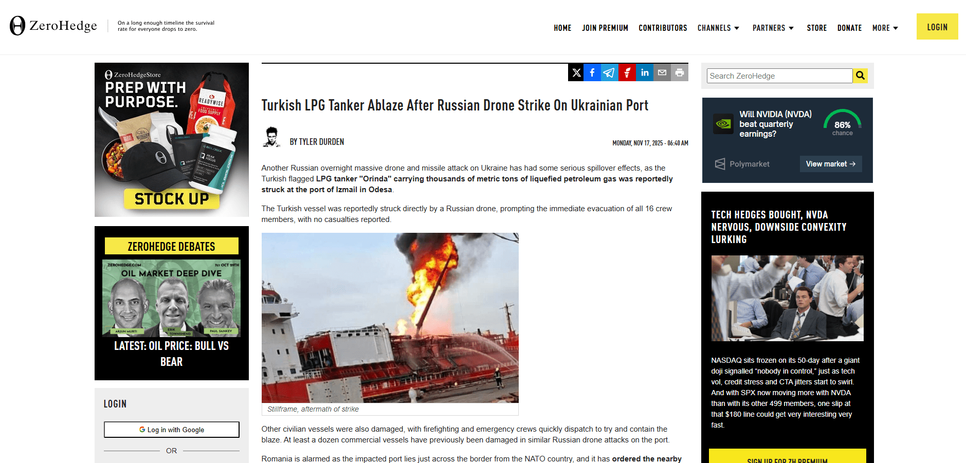 Turkish LPG Tanker Ablaze After Russian Drone Strike On Ukrainian Port