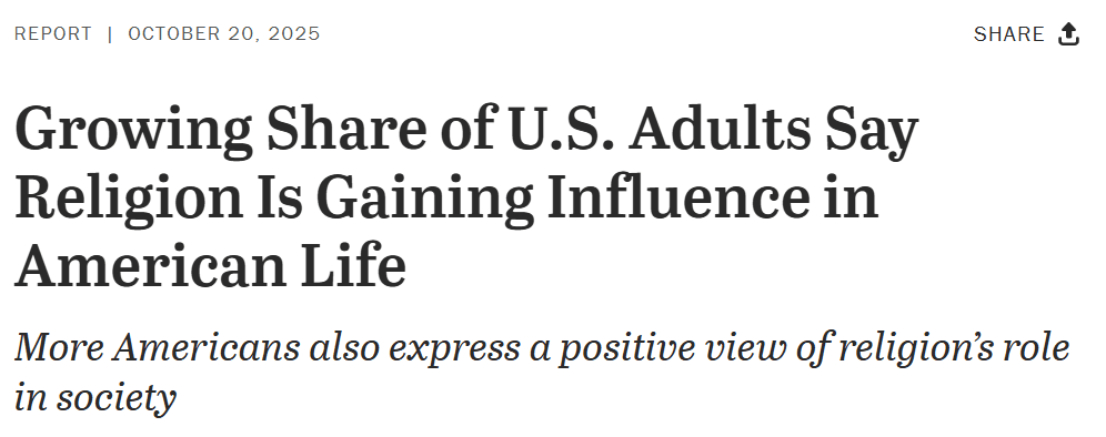 Growing Share of U.S. Adults Say Religion Is Gaining Influence in American Life