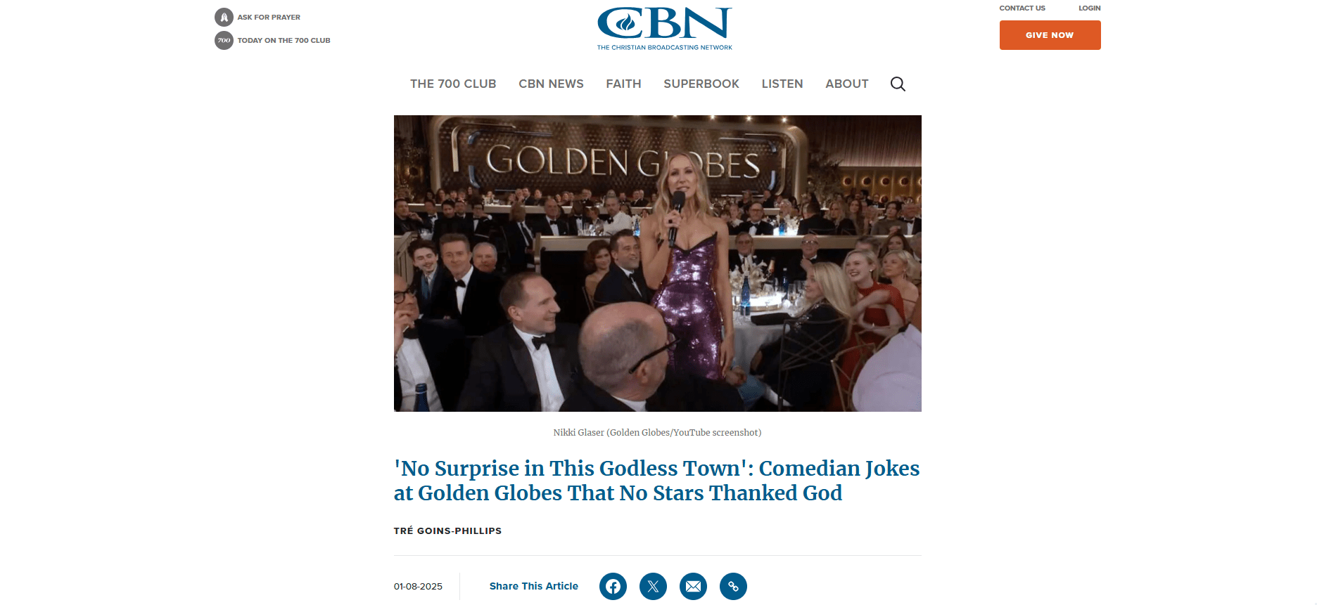 'No Surprise in This Godless Town': Comedian Jokes at Golden Globes That No Stars Thanked God